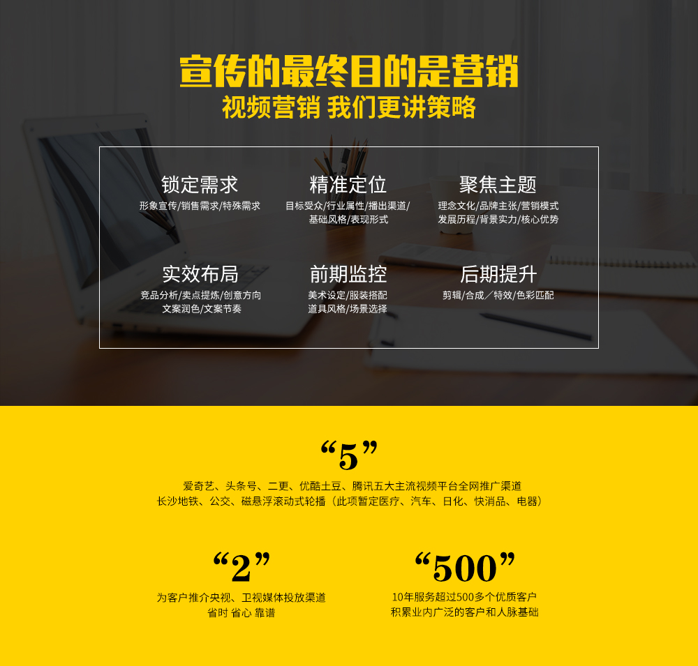 公司自成立以來,始終保持專業做事、精益求精的服務態度,從客戶角度出發,用心為客戶創造最合適的視聽產品,提供超越價值的影視服務,幫助客戶提升品牌形象,增加知名度,增強品牌競爭力。